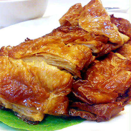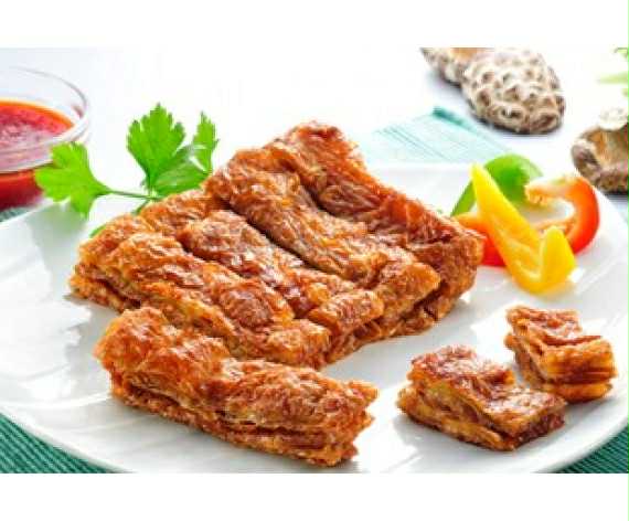 脆皮斋烧鹅是一款用腐皮做成的素食。它有着金黄色的表皮如烧鹅般的脆皮一样,入口满嘴豆香味。