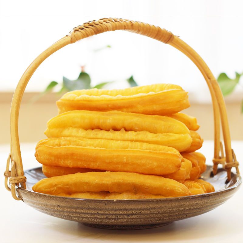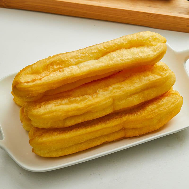 三全牌冷冻油条是短的,可以很方便地放入煎锅或空气炸锅, 煎热或烤热的油条外焦里嫩,香脆可口,可以做早餐或小吃。