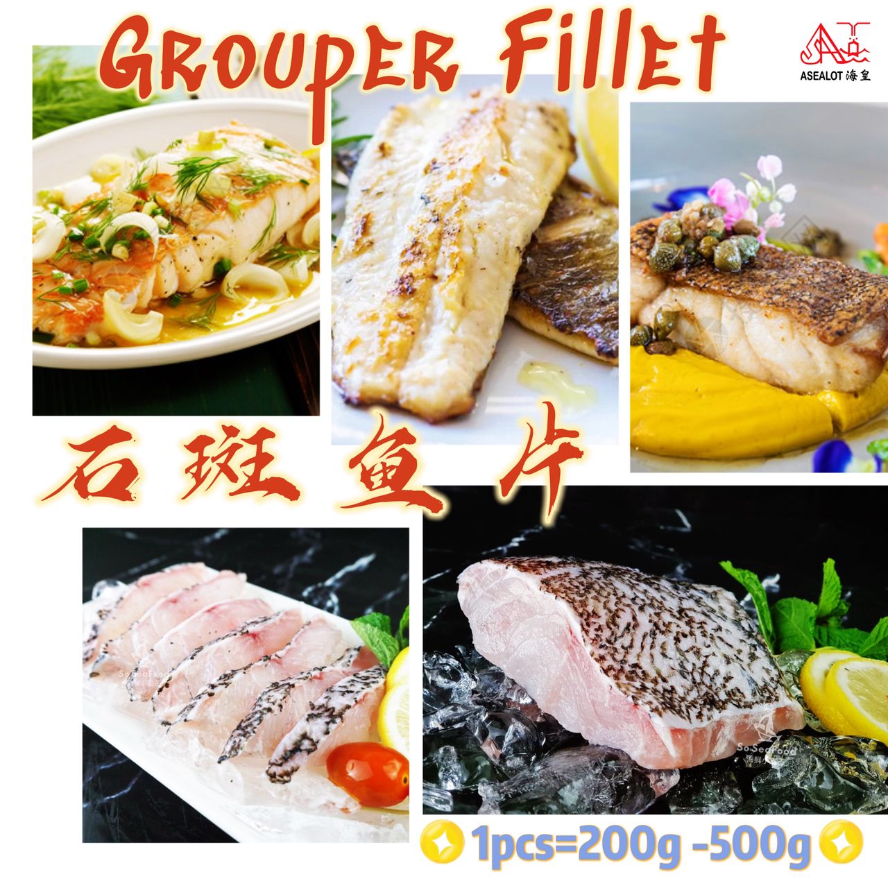 Grouper fillet is a versatile and delicious seafood option. It is known for its mild, sweet flavor and firm texture, making it ideal for various cooking methods such as grilling, baking, or pan-searing. Grouper fillets are often prized for their thick, white flesh that flakes easily when cooked. They can be seasoned with herbs, spices, and sauces to enhance their natural taste or used in recipes ranging from simple grilled fillets to gourmet seafood dishes. With its high protein content and low fat, grouper fillet is a nutritious choice for seafood lovers looking for a flavorful and healthy meal option.